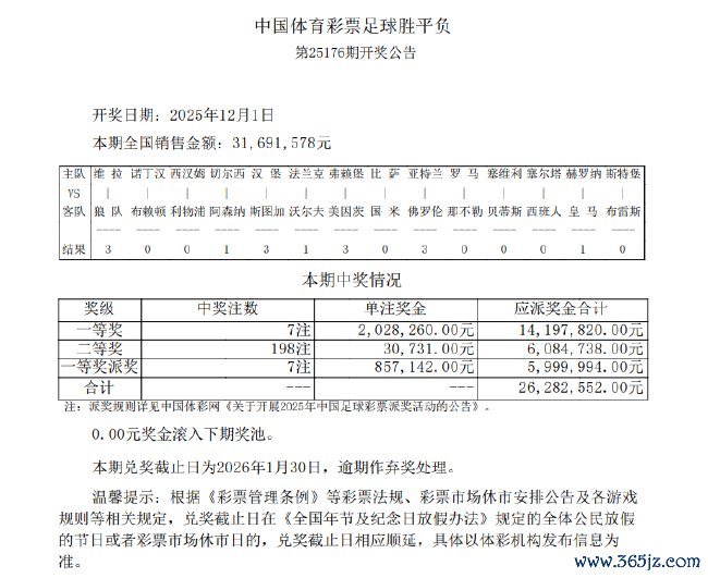 北京技艺12月1日,输赢彩第25176期开奖效果揭晓。足彩派奖头奖开出7注,单注奖金2,028,260元,本期600万派奖奖金沿路派完,每注多得857,142元,单注悉数2,885,402元。二等奖开出198注30,731元。任九开出1,283注13,354元,因派奖每注可多得4,676元,单注悉数18,030元。本期14场销量为31,691,578元,任九投注总数为26,771,682元。